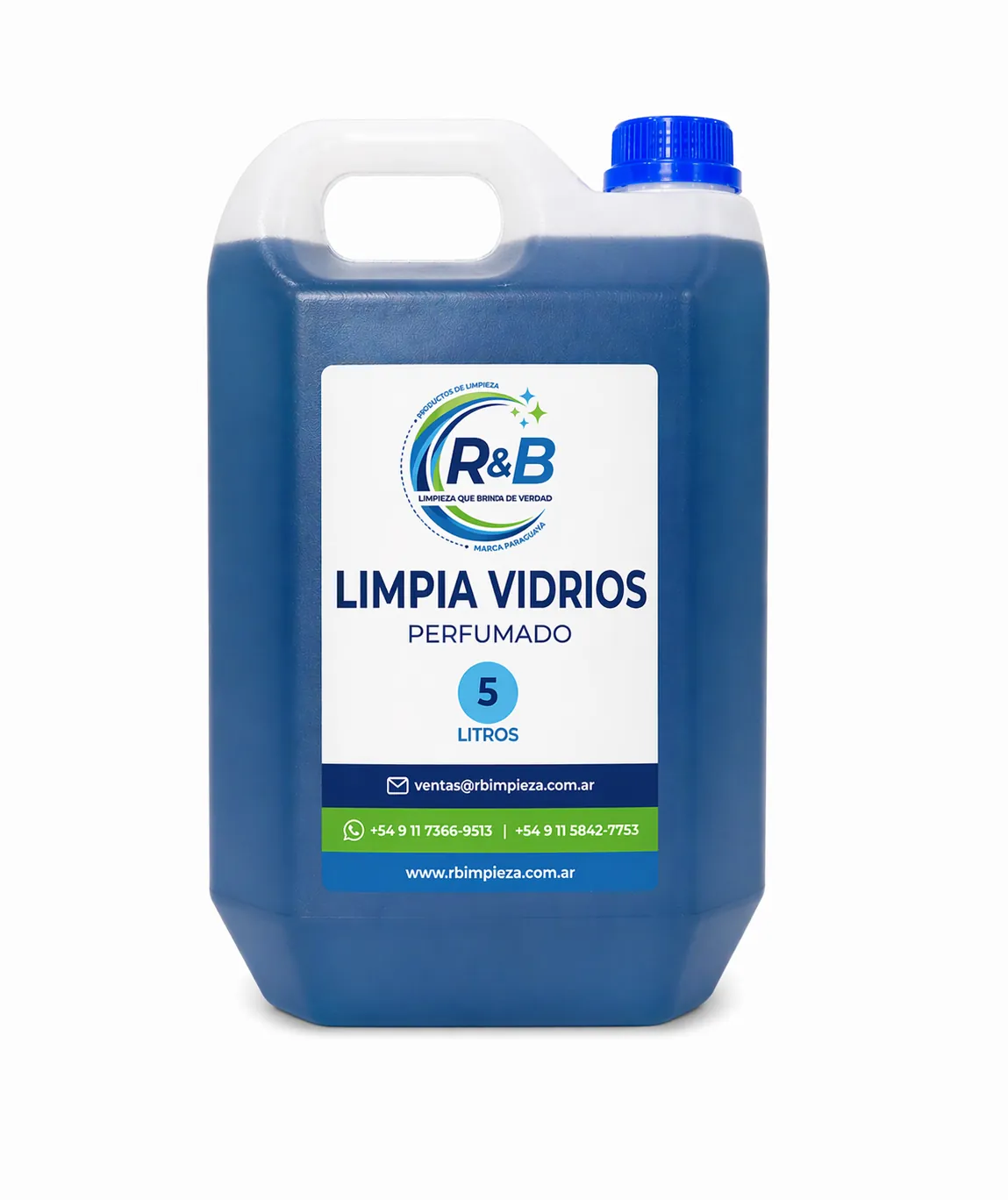 Limpia vidrios perfumado por 5 litros, ideal para comprar productos de limpieza por mayor en Buenos Aires y todo el país.