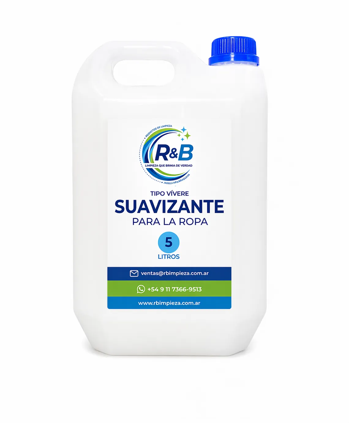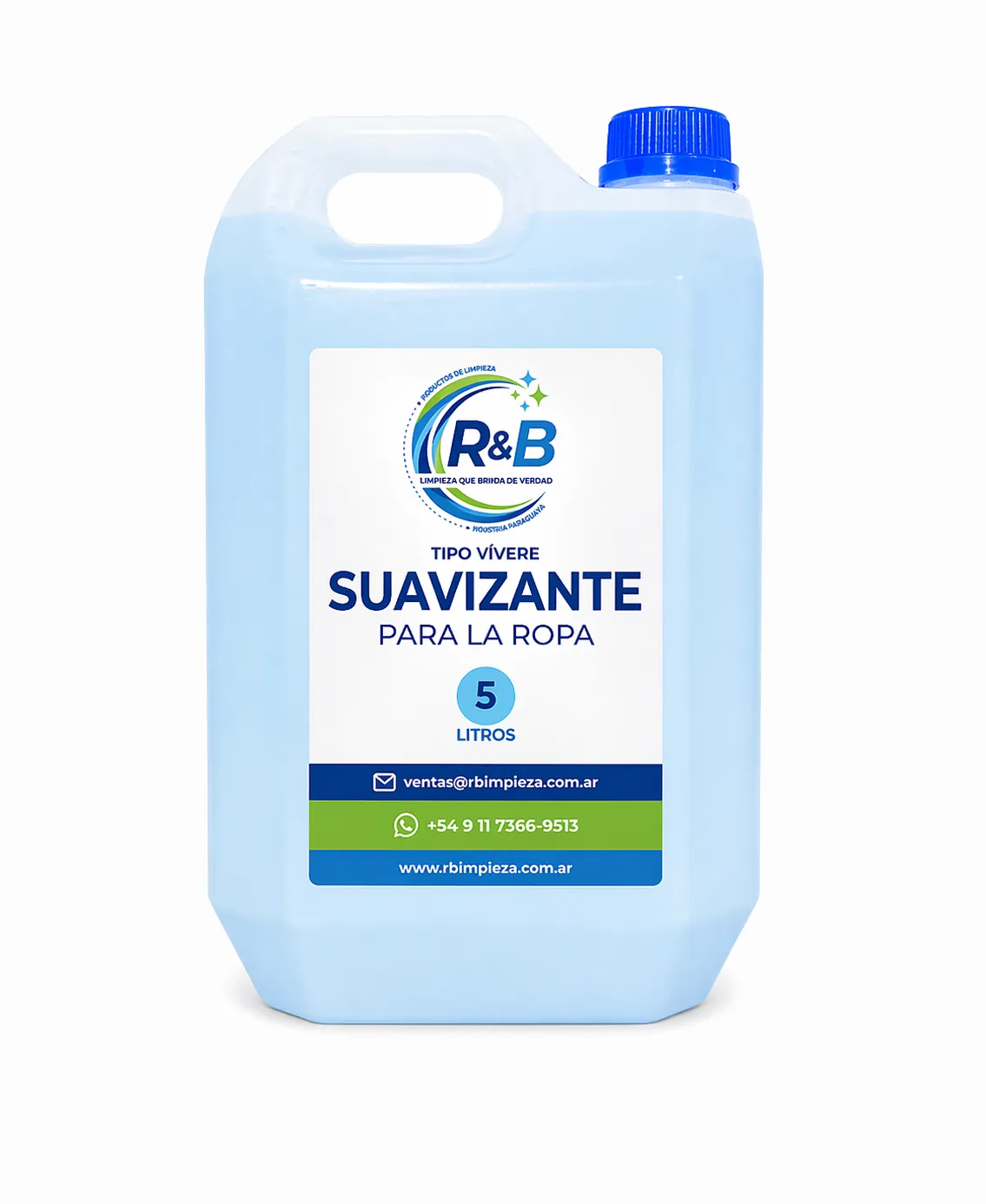 Suavizante Tipo Vivere x 5 litros, ideal para lavanderías, hoteles y negocios que necesitan productos de limpieza y cuidado textil en cantidad.